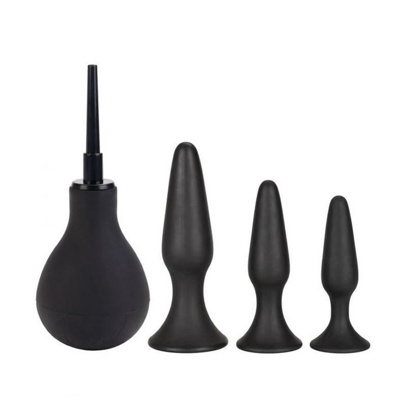 Ideál para principiantes por sus tres tamaños de plugs que facilitan la iniciación anal hasta lograr el tamaño mas avanzado. Ducha anal incluida